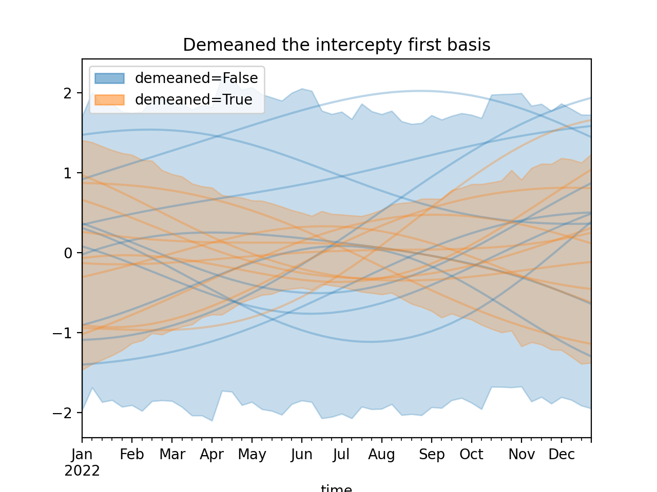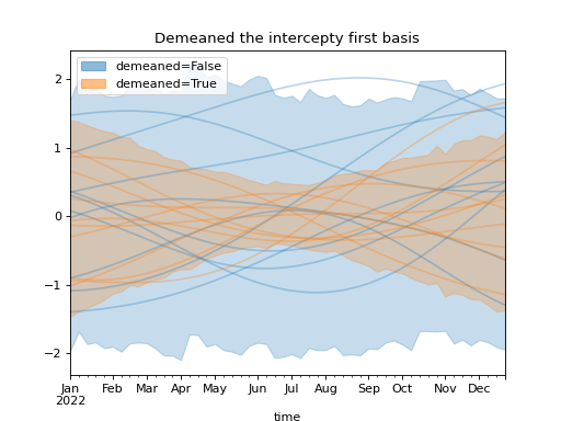 )Using a demeaned basis to remove “intercept” effect of first basis: